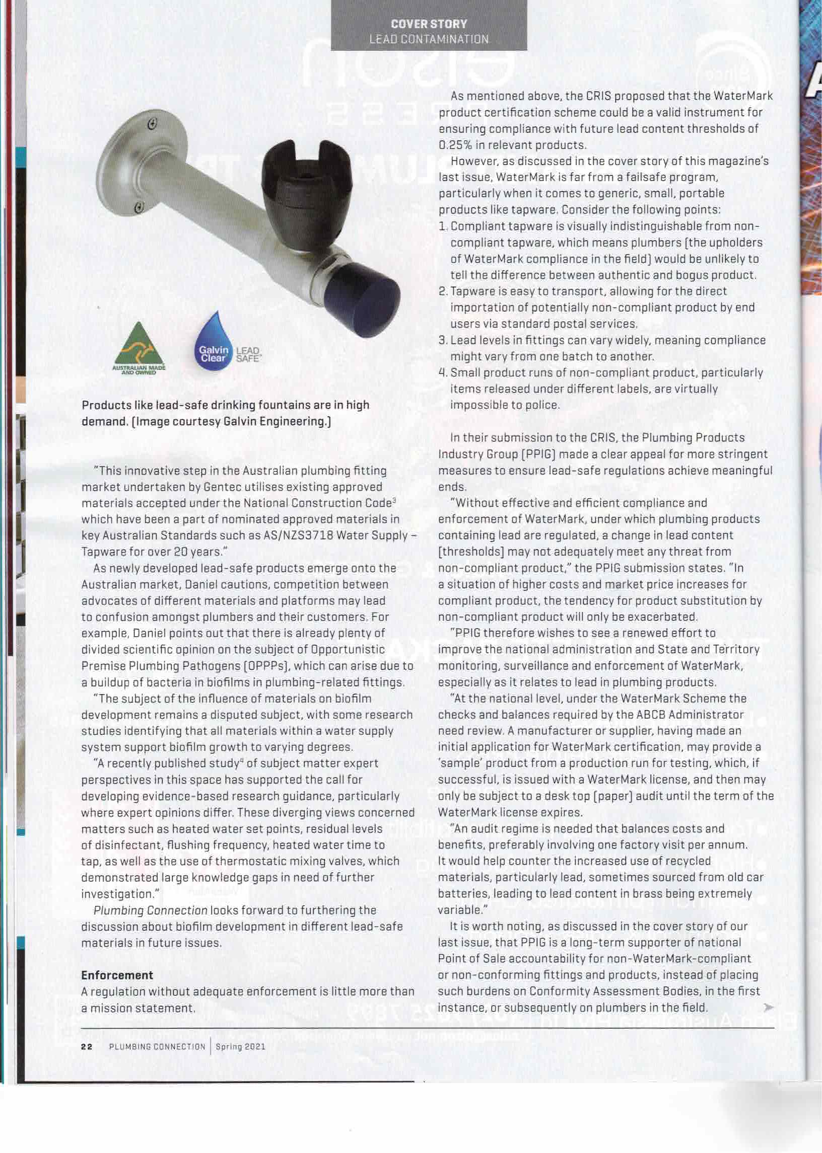 The following article appeared in the Spring 2021 issue of 'Plumbing Connection'